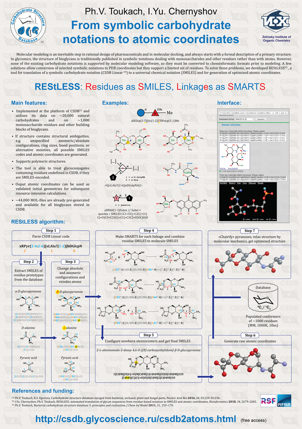 "REStLESS: automated translation of glycan sequences from residue-based notation to SMILES and atomic coordinates"